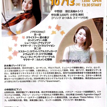 鈴木舞さんと小林侑奈さんのサロンコンサート